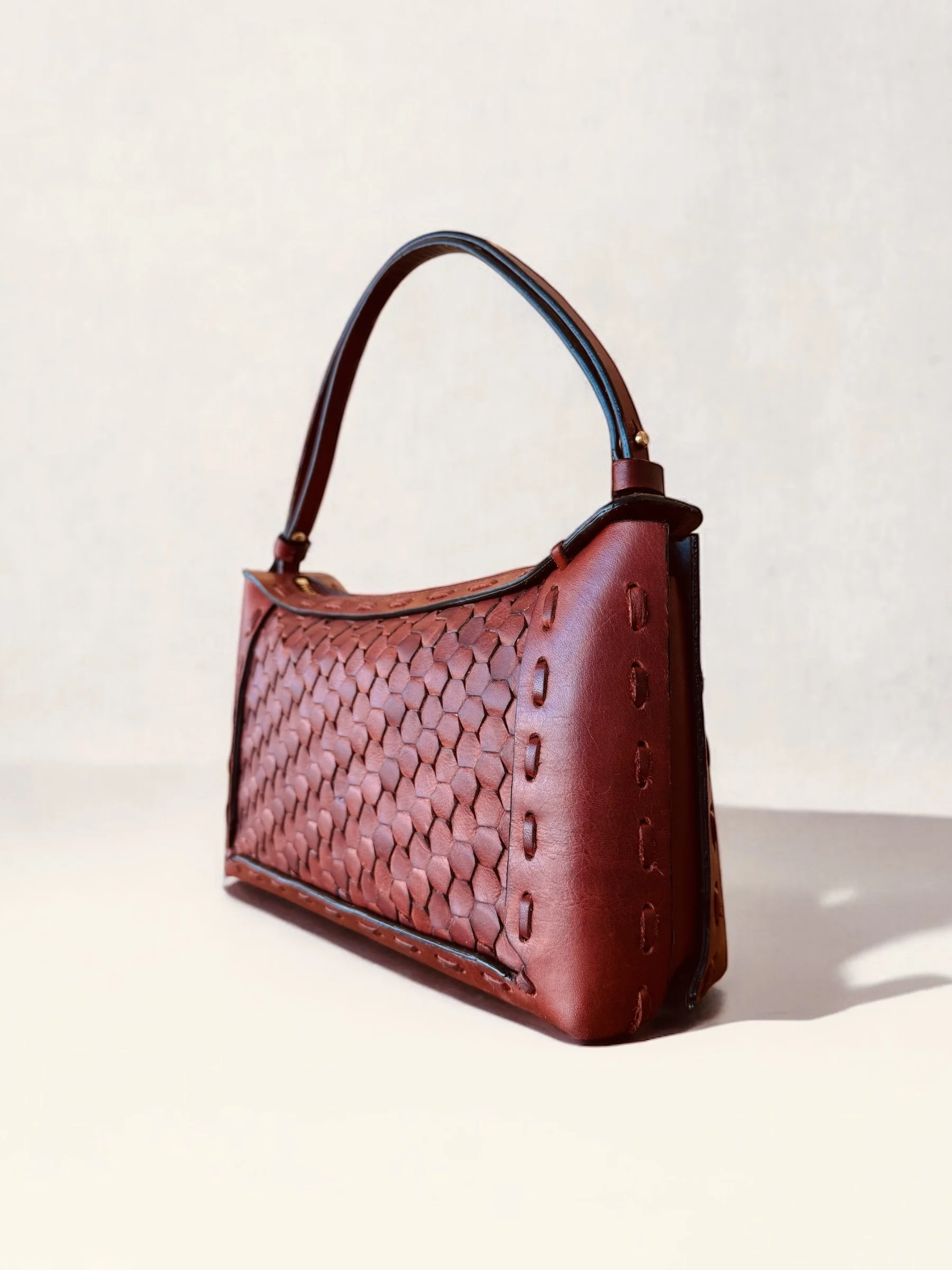 N O R B Y E strives to create original handmade leather bags and purses that are functional, durable, indispensable and reflect the traditions and trends that touch her through architecture, art and fashion. In accordance with these criteria, she bridges sustainability and fashion, functionality and aesthetics, as well as immediacy and accuracy in the execution of her craft. The bags span the spectrum of minimalistic Scandinavian design, Japanese traditional simplicity and aesthetics, over a more raw design, a unique pattern that forms a network of hexagons.